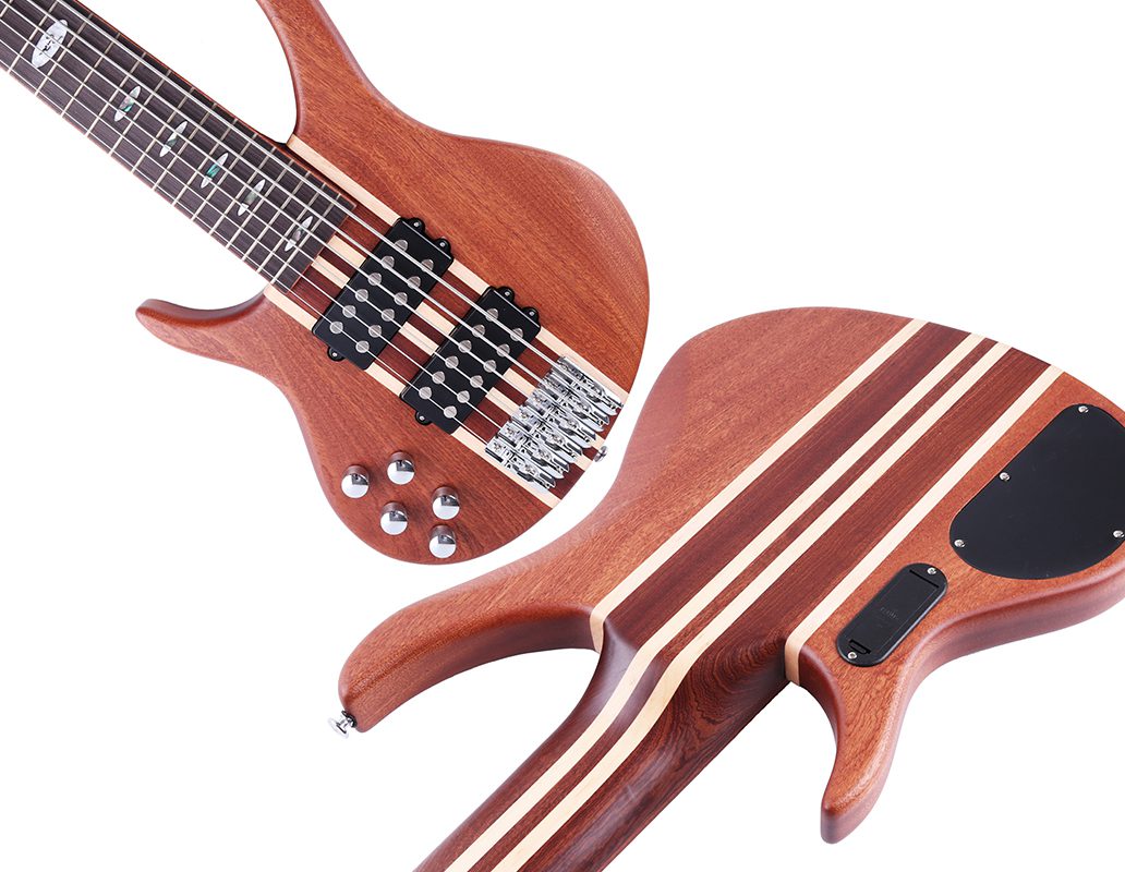 Korpus: Sapelli + Ahorn. Vereinigung des Holzharms, Interpretation eines schönen Basses. Dieser E-Bass aus Sapelli- und Ahornholz bietet Ihnen ein außergewöhnliches Spielgefühl. Der Korpus ist aus hochwertigem Sapelli-Holz gefertigt, ein Material, das für seine hervorragenden Klangeigenschaften bekannt ist. Die reichen Resonanzeigenschaften verleihen diesem E-Bass einen tiefen und vollen Bass, der Ihr Spiel mit Kraft und Spannung erfüllt. Gleichzeitig verleiht die einzigartige Textur und Farbe des Sapelli-Holzes dem E-Bass eine natürliche Schönheit. Jedes Detail strahlt die warme und weiche Textur des Holzes aus und zeigt das Wesentliche des handgefertigten Instruments. Der Hals ist aus robustem und langlebigem Ahornholz. Die sorgfältig geschnitzten Texturen lassen jede Maserung die einzigartige Textur des Holzes erkennen. Zusammen mit dem Sapelli-Korpus schaffen sie ein elegantes und ansprechendes visuelles und taktiles Erlebnis. Ob auf der Bühne oder im Übungsraum, dieser E-Bass kann Ihnen eine hervorragende Spielführung bieten. Der Bass ist tief und voll, die mittleren und hohen Töne sind klar und angenehm und lassen Sie Ihrer Kreativität freien Lauf, um die bewegendsten Basspassagen zu spielen. |