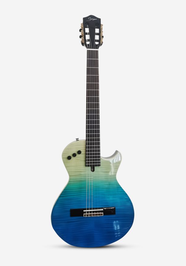 | Korpus: Okoumé, Tigerstreifen-Ahornfurnier Diese klassische Gitarre mit einem Korpus aus Okoumé und Tigerstreifen-Ahornfurnier hat zahlreiche Vorteile. Okoumé-Holz besitzt gute akustische Eigenschaften und kann der Gitarre eine warme und ausgewogene Tonbasis verleihen. Seine zähe Beschaffenheit gewährleistet die Stabilität der Gitarrenkonstruktion und ist langlebig. Das Tigerstreifen-Ahornfurnier verleiht nicht nur eine einzigartige Schönheit, sondern seine feine Textur macht die Gitarre noch künstlerischer anziehend. Akustisch gesehen trägt das Tigerstreifen-Ahorn zur Verbesserung der Helligkeit und Klarheit des Klangs bei und verstärkt die Klangschichtung. Diese Kombination bringt die Gitarre in puncto Aussehen und Klang in eine perfekte Balance, erfüllt sowohl die visuellen ästhetischen Bedürfnisse als auch bietet dem Spieler einen reichen und bewegenden Klang. |