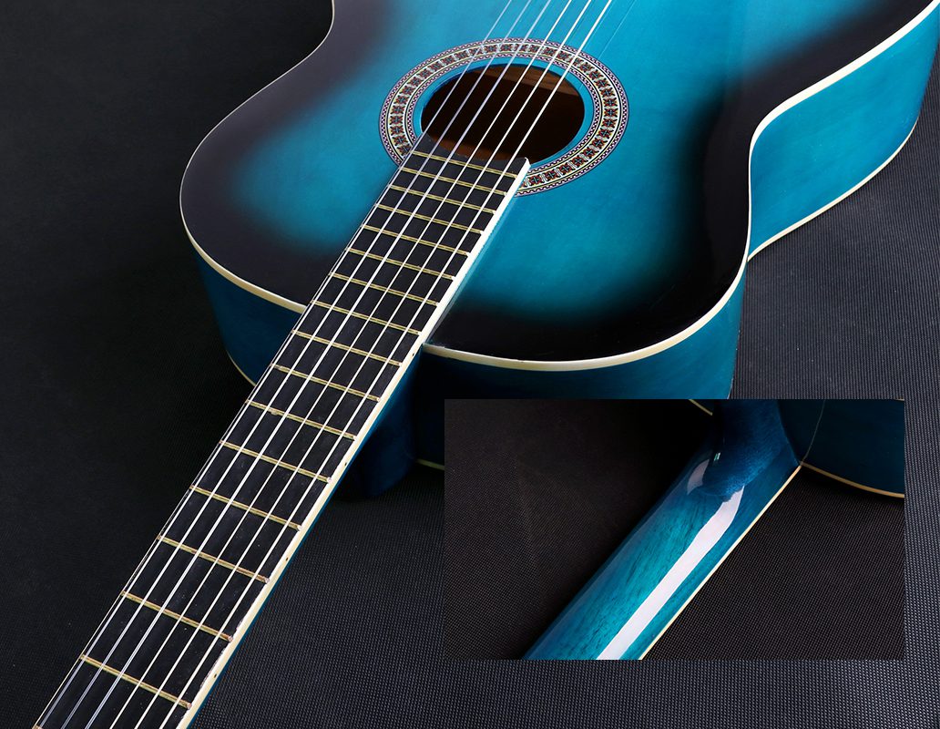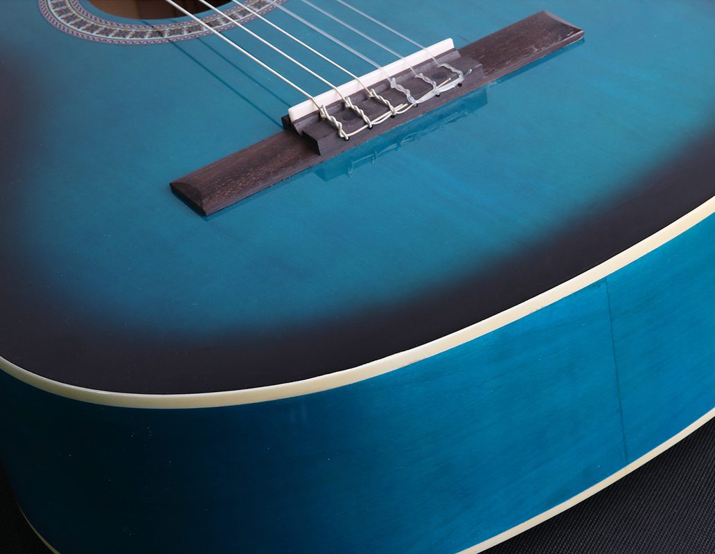 | Körper der Gitarre: Lindenholz. Lindenholz hat eine gleichmäßige Struktur, die es der Gitarre ermöglicht, einen ausgewogenen und stabilen Klang zu erzeugen. Der Übergang zwischen tiefen, mittleren und hohen Tönen ist natürlich und ohne offensichtliche Unstimmigkeiten. Es hat ein relativ geringes Gewicht, so dass Spieler auch nach längerem Spielen nicht leicht müde werden. Lindenholz hat Vorteile bei der Oberflächenbehandlung. Seine feinen Maserungen ermöglichen es, dass der Körper der Gitarre nach dem Lackieren ein schönes Aussehen hat. Darüber hinaus ist Lindenholz nicht schwer zu bearbeiten, was dazu beiträgt, die Produktionskosten der Gitarre zu kontrollieren und mehr Menschen ermöglicht, eine eigene klassische Gitarre zu besitzen. |