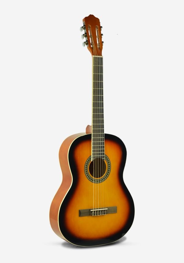 Diese klassische Gitarre mit 39 Zoll hat einen einzigartigen Charme. Körper und Hals der Gitarre sind aus Lindenholz gefertigt. Seine Struktur ist gleichmäßig und verleiht der Gitarre eine stabile und hervorragende akustische Leistung. Der Klang ist voll und reich an Resonanz. Die Verwendung von Griffbrett und Steg aus Holzwerkstoff garantiert sowohl Haltbarkeit als auch ein glattes Spielgefühl. Die Stabilität des Holzwerkstoffs macht es unempfindlich gegenüber Umweltbedingungen, so dass Sie jederzeit flüssig spielen können. Die ABS-Saitenhalter können die Schwingungsverluste der Saiten effektiv reduzieren und die Klangqualität und die Sustain-Effekte verbessern. Die glänzende Lackierung verleiht der Gitarre ein schönes Aussehen und macht sie zu einem Blickfang auf der Bühne oder zu Hause. Ob Anfänger auf ihrer musikalischen Reise oder fortgeschrittene Spieler, die eine noch bessere Leistung suchen, diese Gitarre kann Ihre Bedürfnisse erfüllen. Sie wird Sie in der Welt der Musik begleiten, ständig erkunden und wundervolle Melodien spielen.