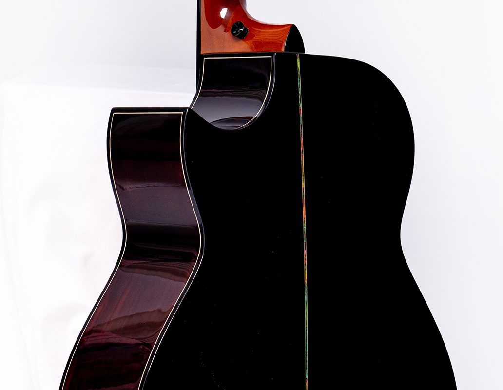 The Back & Sides of this acoustic guitar are made of rosewood, showing a noble and deep temperament. The rosewood Back & Sides are hard in texture, providing excellent structural support for the guitar and enhancing the overall stability. From an acoustic point of view, the rosewood Back & Sides give the guitar a rich and warm mid- and low-frequency response. When you play, the sound seems to be infused with mellow charm, the mid-frequency band is full and emotional, and the low-frequency band is deep and powerful, adding more layers and three-dimensionality to the music. The unique texture and color of the rosewood Back & Sides also make this guitar more attractive in appearance. Each wood grain seems to tell the story of the years, making it a work of art that is both pleasant to the ear and pleasing to the eye. |