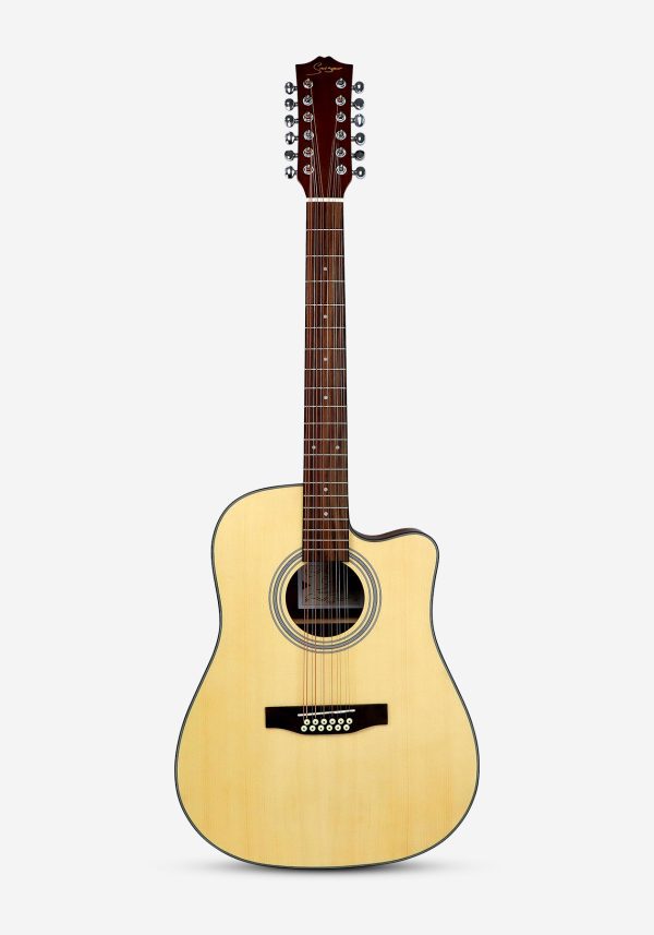 The panel is made of spruce plywood. The spruce has uniform texture, is lightweight yet resilient. This material endows the guitar with a bright and crisp tone. When playing, every note seems to carry the breath of nature, as clear and moving as gurgling water. Whether it’s a brisk rhythm or a melodious melody, the spruce plywood panel can be perfectly presented, adding a touch of agility and vitality to your playing. The back and sides are made of walnut plywood. Walnut is known for its deep color and rich texture. It brings a warm and mellow tone to the guitar. The bass is full and powerful, the midrange is round and harmonious, and the treble is clear and bright. The walnut plywood back and sides not only perform well in tone but also add a touch of nobility and elegance to the guitar. The cutaway body design makes playing at high frets even more effortless, expanding the possibilities of playing. This 12-string folk guitar perfectly combines the brightness of spruce plywood and the mellowness of walnut plywood, bringing you an auditory feast. Whether you are playing passionately on the stage or playing alone in a quiet corner, it can become your most loyal companion and accompany you on every musical journey. Let’s use this guitar to play the melody of life and write our own music legend. |