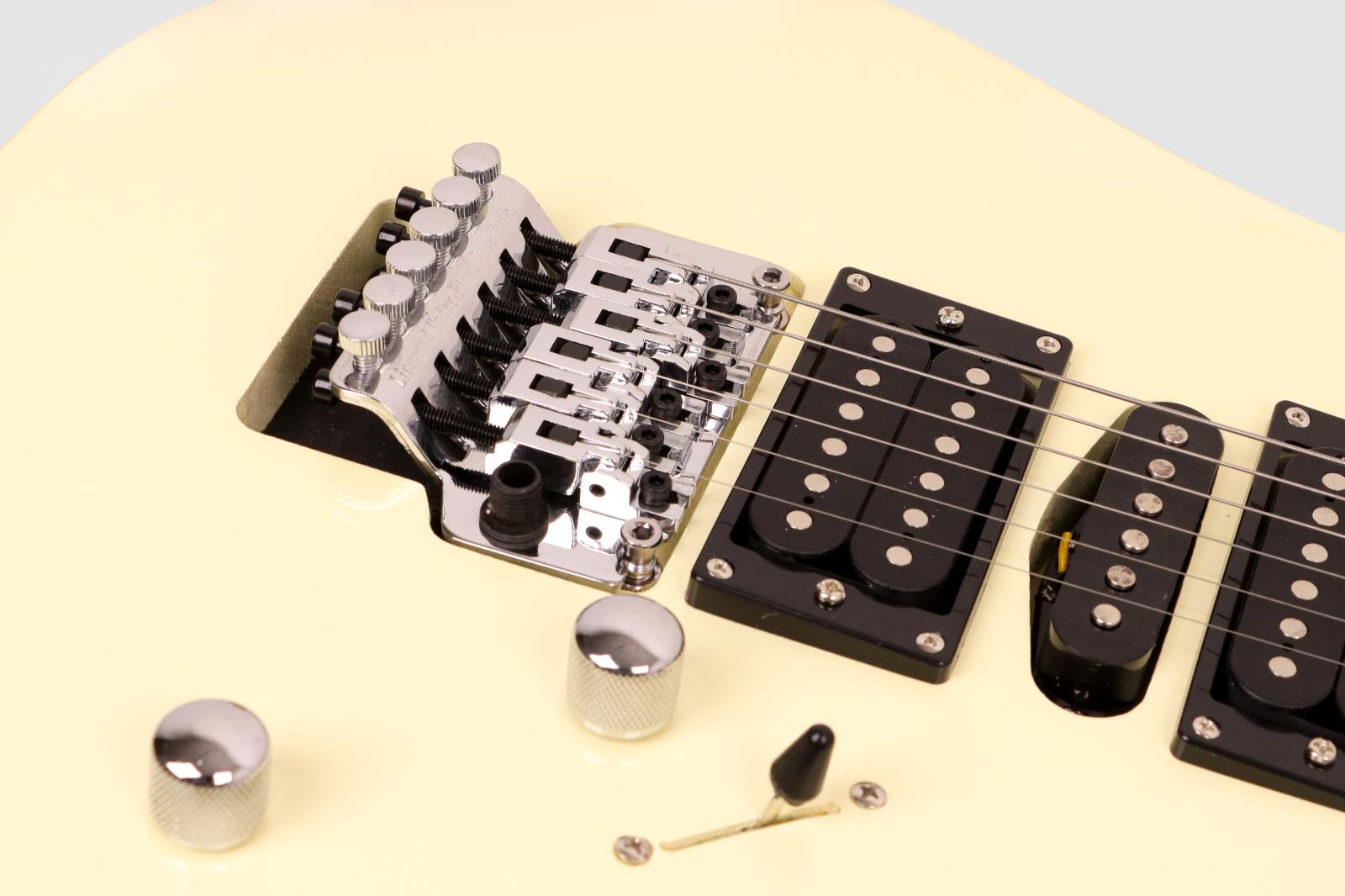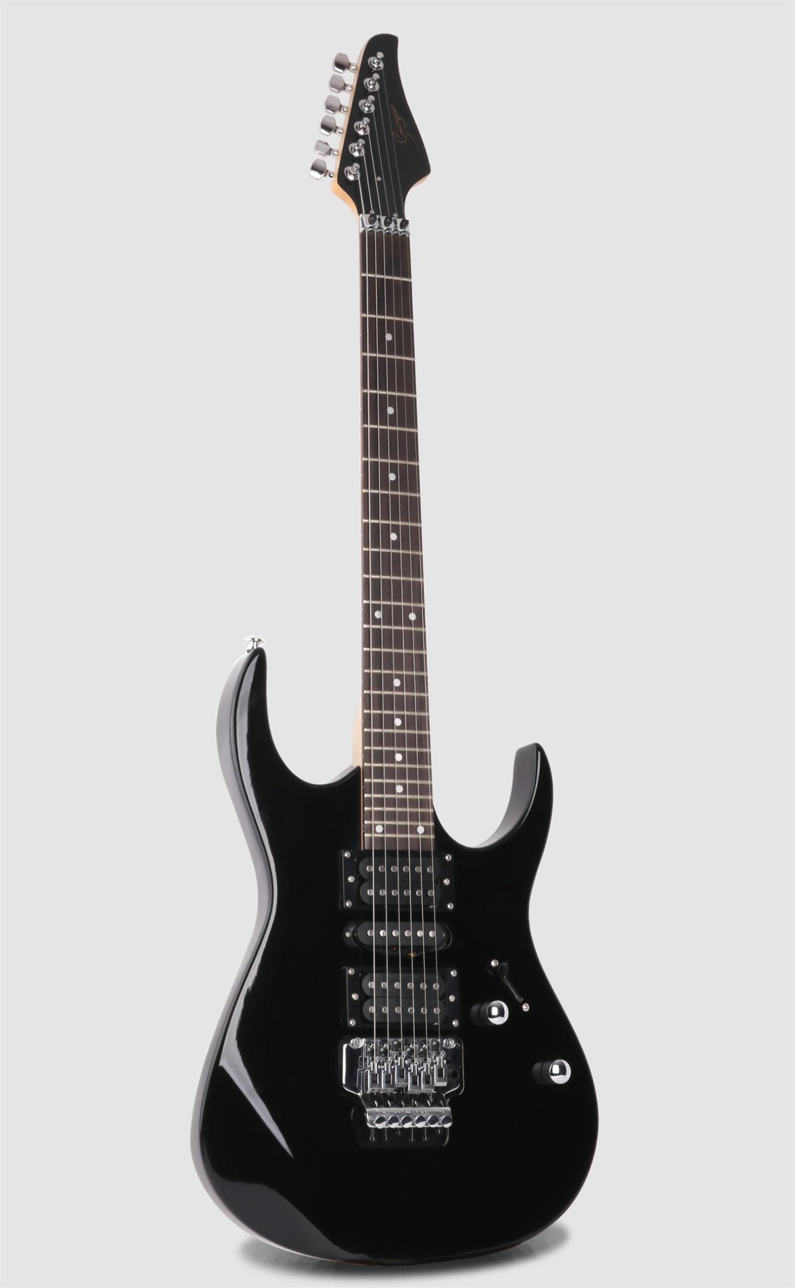 This electric guitar is a masterpiece! The 24-fret design gives you a wider range of sound when playing. The combination of HSH pickups provides rich and varied tones, with crisp highs, warm mids, and heavy bass. The poplar body not only resonates well and has a balanced tone, but also ensures the stability of the body. The double-shake system adds infinite possibilities to the performance, whether it is creating an intense vibrato effect or creating a unique musical atmosphere, it can do it well. With it, you can start your extraordinary musical journey!