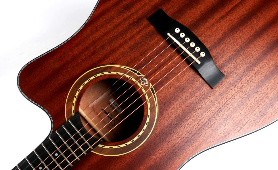 Mahogany tops bring unique and charming sound characteristics to acoustic guitars. It can produce warm, rich and resonant sounds. Mahogany has excellent performance in the mid- and low-frequency range, giving the sound a full thickness and deep background. In terms of timbre balance, the mahogany top can provide a relatively uniform frequency response, allowing the treble, mid-range and bass to blend and coexist harmoniously. This makes the melodies played more smooth and natural, whether it is a soft lyric or a dynamic fast-paced track, it can perform well. In addition, mahogany has good stability and durability. It can adapt to different climates and environmental conditions, and is not easily deformed or cracked due to changes in temperature and humidity, ensuring the long-term use of the guitar. |
