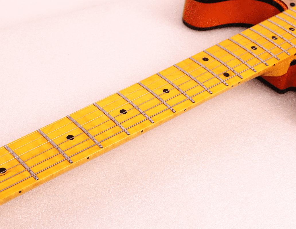 A ponte é feita de bordo de freixo em forma de tigre raro e é tratada com pintura fosca, apresentando uma textura discreta e luxuosa.As texturas finas e únicas do bordo de freixo em forma de tigre, contra o fundo da pintura fosca, parecem mais contidas e profundas, adicionando um charme único à sua guitarra. Este tratamento fosco não apenas reduz o reflexo, mas também fornece um toque confortável, permitindo que seus dedos se movam naturalmente e suavemente na ponte durante a performance. O design das casas redondas é um ponto forte. A forma arredondada das casas reduz a fricção entre os dedos e as casas, tornando mais fácil e livre para você usar técnicas como deslizar as cordas, empurrar as cordas e amassar as cordas, e conseguir expressar precisamente cada emoção musical sutil.Seja tocando escalas rápidas ou mudando acordes complexos, esta ponte pode lhe dar uma excelente resposta. Por exemplo, quando você faz um solo rápido e apaixonado, as casas redondas permitem que seus dedos se movam rapidamente e suavemente na ponte, e a boa ressonância do bordo de freixo em forma de tigre torna as notas claras e brilhantes; ao interpretar uma melodia lírica, o toque suave da pintura fosca e o feedback sutil das casas redondas permitem que você transmita melhor as emoções na música. Ao escolher esta ponte de guitarra elétrica de bordo de freixo em forma de tigre com pintura fosca e casas redondas, você está escolhendo uma experiência de performance suprema e uma expressividade musical incomparável, ajudando-o a mostrar um desempenho mais brilhante no caminho da música.