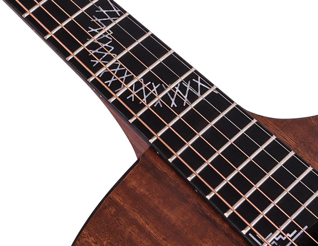 Гриф этой акустической гитары folk изготовлен из высокоплотного технологического эбенового дерева. Его отличная твердость и стабильность обеспечивают надежную гарантию для вашей игры. Дизайн круглых ладов еще более изящен, делает пальцы более гладкими и плавными при нажатии на струны, уменьшает трение и сопротивление. Будь то быстрое переключение аккордов или тонкое исполнение нот, можно легко справиться. Совершенное сочетание высокоплотного технологического эбенового дерева и круглых ладов не только повышает комфорт игры, но и придает этой гитаре уникальный шарм, позволяя вам полностью проявить свой талант на музыкальном пути.