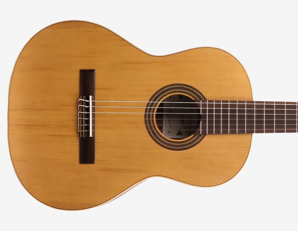 红松单板面板的古典吉他具有诸多优点。红松单板的纹理均匀,外观美观。在音色方面,它能产生温暖、丰富且饱满的声音,低音深沉,高音柔和,整体音色具有浓郁的情感表现力。红松单板的共振性能出色,能使吉他发声更灵敏,弹奏时响应迅速,轻松展现细微的音乐动态。而且随着时间的推移,其音色会愈发成熟和优美。对于追求温暖、抒情风格演奏的古典吉他爱好者来说,红松单板面板的吉他是理想之选。 |